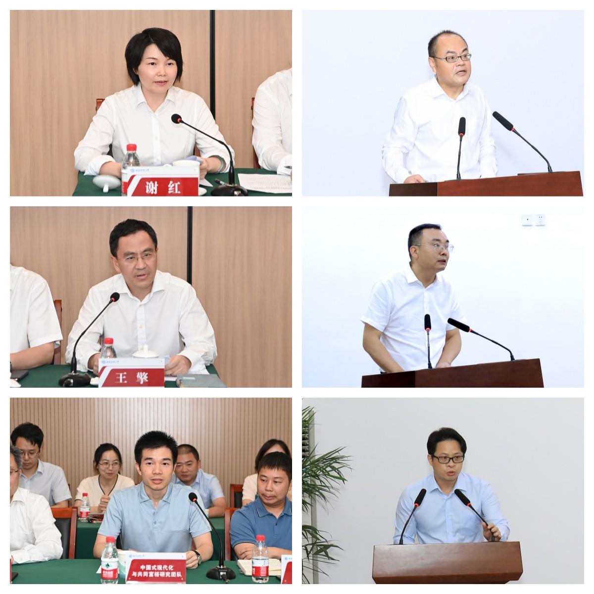 會上,習近平經濟思想研究院黨委副書記、常務副院長王擎與數字經濟與交叉科學研究院黨委副書記、常務副院長馬永強分別介紹了研究團隊運行和建設相關情況。在與會校領導的見證下,首批入駐團隊與兩大集成創新平臺黨政主要負責人簽訂了目標責任書。首批入駐團隊負責人代表徐舒、雷震發言。習近平經濟思想研究院黨委書記謝紅、數字經濟與交叉科學研究院黨委書記王石分別主持會議,并就落實會議精神作出部署安排。