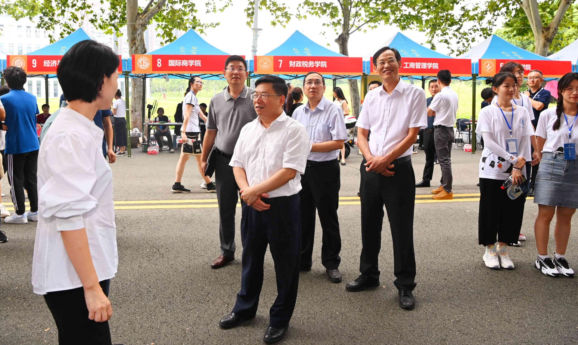 “你們從哪里來?”“一路辛苦了!”“陪爸爸媽媽一起逛逛校園!”“請放心地把孩子交給我們!”趙德武關切地詢問路途情況,并向新生和家長送上親切問候與祝福。在學院(研究院)迎新報到點位、專項工作點位,趙德武仔細了解工作情況、翻閱工作資料,對師生員工的辛勤工作表示充分肯定,并希望大家要以學生為中心,同心協力做好各項服務保障,高標準高質量完成迎新工作。