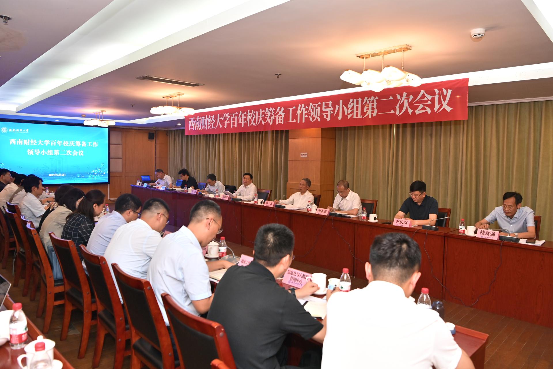 6月6日下午,學校在光華校區光華樓601會議室召開百年校慶籌備工作領導小組第二次會議,總結領導小組第一次會議以來工作進展,審議通過《西南財經大學慶祝建校100周年籌備工作方案》和《西南財經大學慶祝建校100周年2023年籌備工作計劃》。百年校慶籌備工作領導小組組長、黨委書記趙德武和黨委副書記、校長卓志,黨委副書記馬驍,黨委副書記、副校長李永強,黨委副書記、紀委書記孫殿明,黨委常委、副校長尹慶雙、張邦富、桂富強出席會議。百年校慶籌備工作領導小組相關成員單位負責人以及百年校慶籌備工作辦公室全體人員參加會議。卓志主持會議。