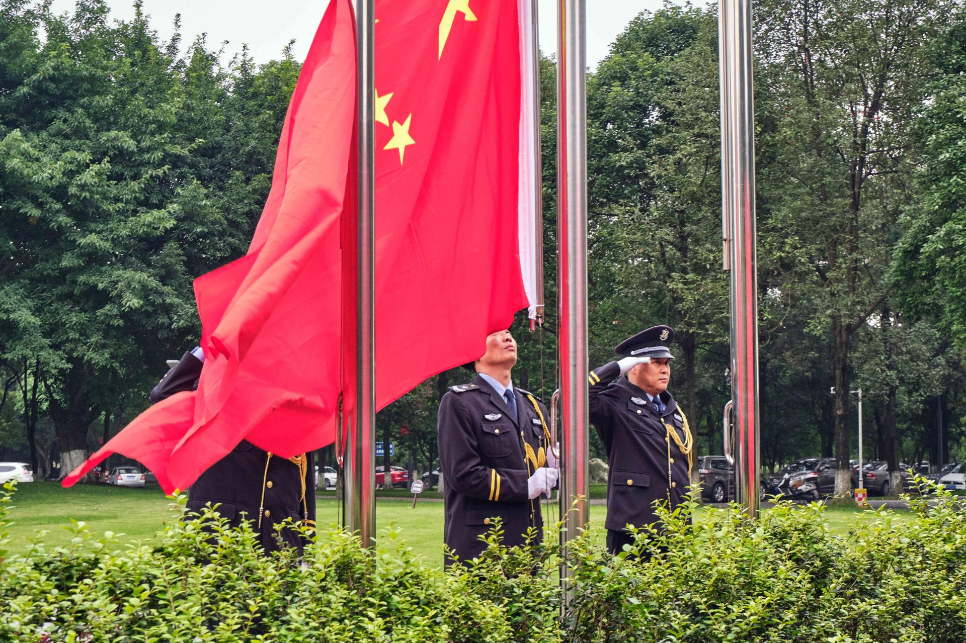 家有山河錦繡,國有歲月芳華。10月1日清晨,學校慶祝中華人民共和國成立72周年升國旗儀式在柳林校區、光華校區隆重舉行。200余名西財師生懷著激動而喜悅的心情,齊聚兩校區升旗臺,向偉大祖國獻禮,與全國人民一道為新中國慶賀生日。黨委副書記曾道榮與法學院、國際商學院師生代表,國旗班成員和校衛隊員等參加了柳林校區升國旗儀式;黨委常委、副校長歐兵與保險學院、統計學院、繼續(網絡)教育學院師生及校衛隊員等參加了光華校區升國旗儀式。相關職能部門和學院負責人主持升國旗儀式。